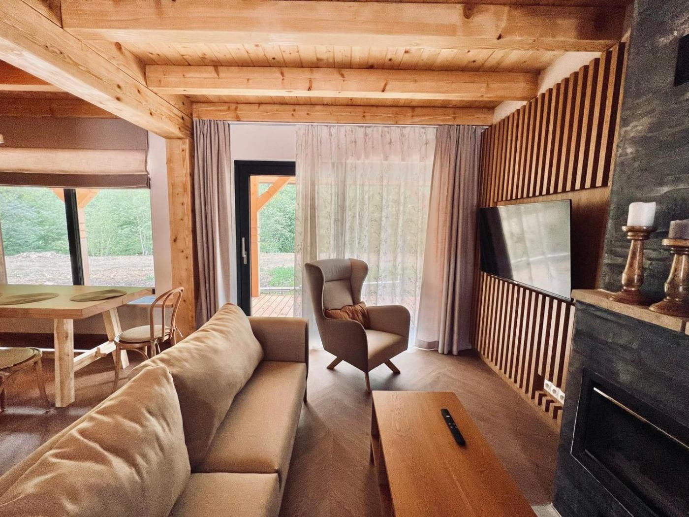 Domek typu Superior. Guests will have a special experience as the chalet features a fireplace. Featuring a private entrance, this air-conditioned chalet consists of 1 living room, 2 separate bedrooms and 2 bathrooms with a walk-in shower. In the fully equipped kitchen, guests will find a stovetop, a refrigerator, kitchenware and a microwave. Boasting a terrace with mountain views, this chalet also provides a seating area and a flat-screen TV with streaming services. The unit offers 4 beds. Domek - 6 osobowy. Powierzchnia pokoju ok.: 65 mkw.