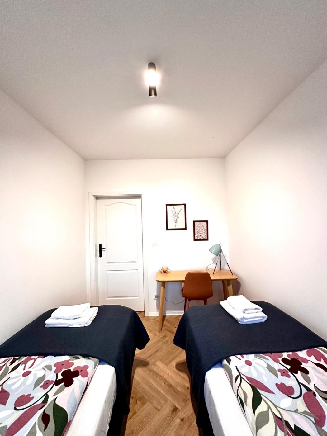 Apartament z 2 sypialniami. Featuring a private entrance, this apartment is comprised of 1 living room, 2 separate bedrooms and 1 bathroom with a walk-in shower and a hairdryer. Guests can make meals in the kitchen that comes with a stovetop, a refrigerator, a dishwasher and kitchenware. This wheelchair accessible apartment features a washing machine, a seating area with a flat-screen TV and a roll-in shower. The unit offers 4 beds. Apartament - 5 osobowy. Powierzchnia pokoju ok.: 47 mkw. ;