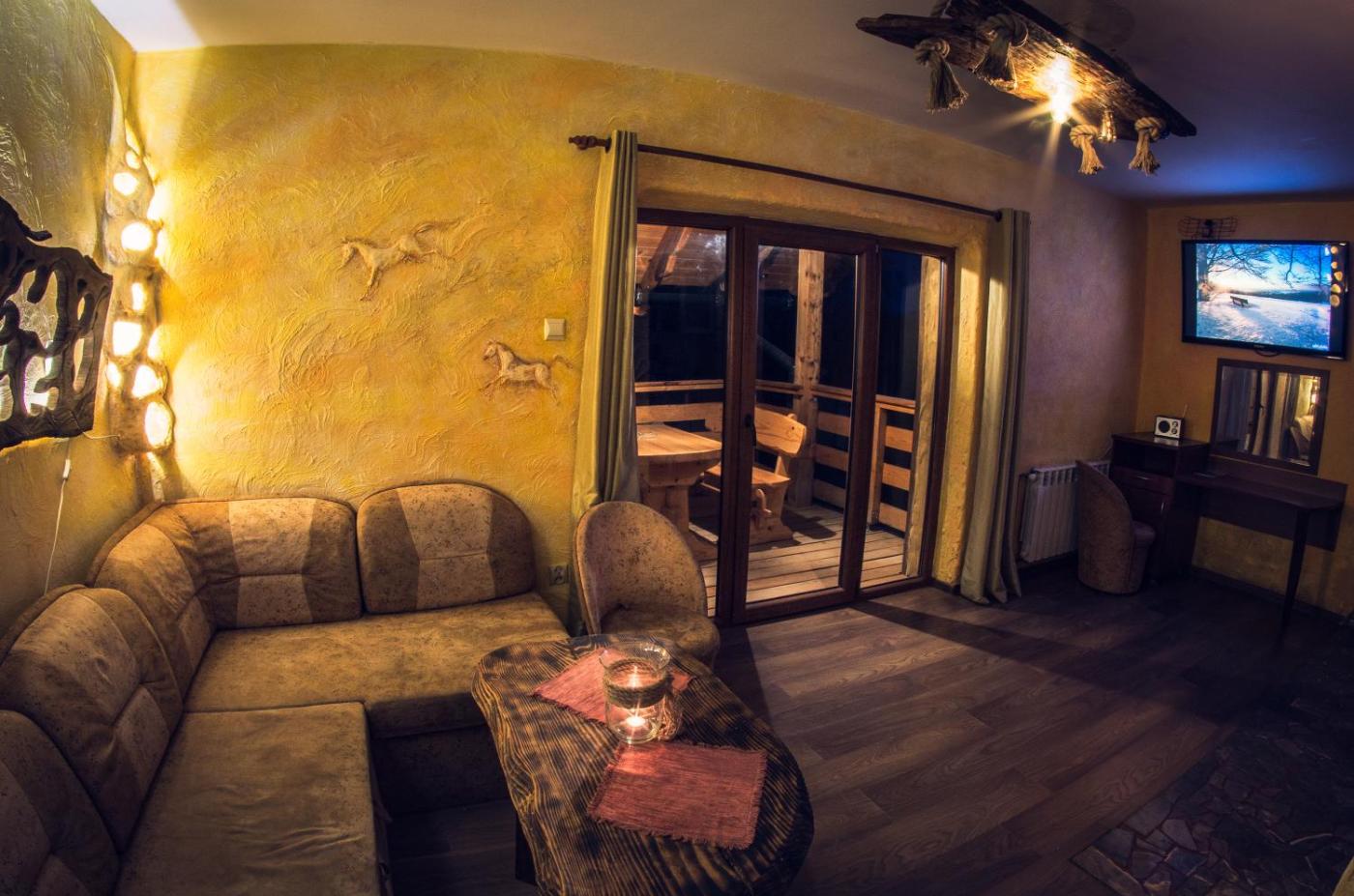 Apartament z 1 sypialnią i kominkiem. Jest to apartament z kominkiem i podłogą wyłożoną kafelkami lub marmurem. Wyposażenie obejmuje telewizor. W aneksie kuchennym zapewniono przybory kuchenne. Z pokoju można wyjść na werandę. Apartament - 4 osobowy. Powierzchnia pokoju ok.: 36 mkw. ;