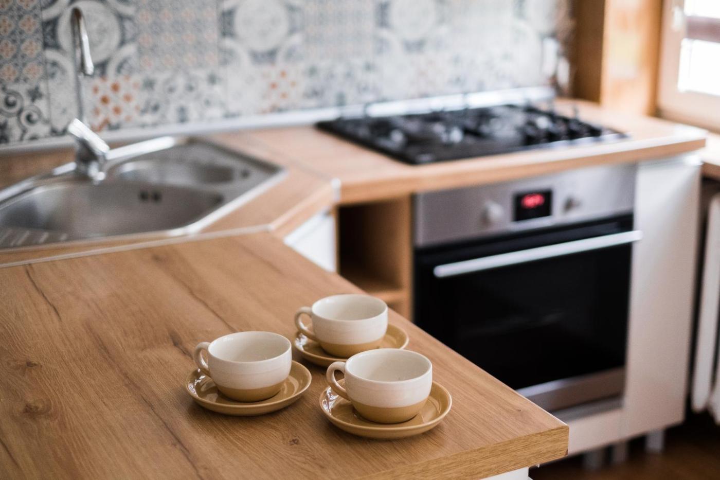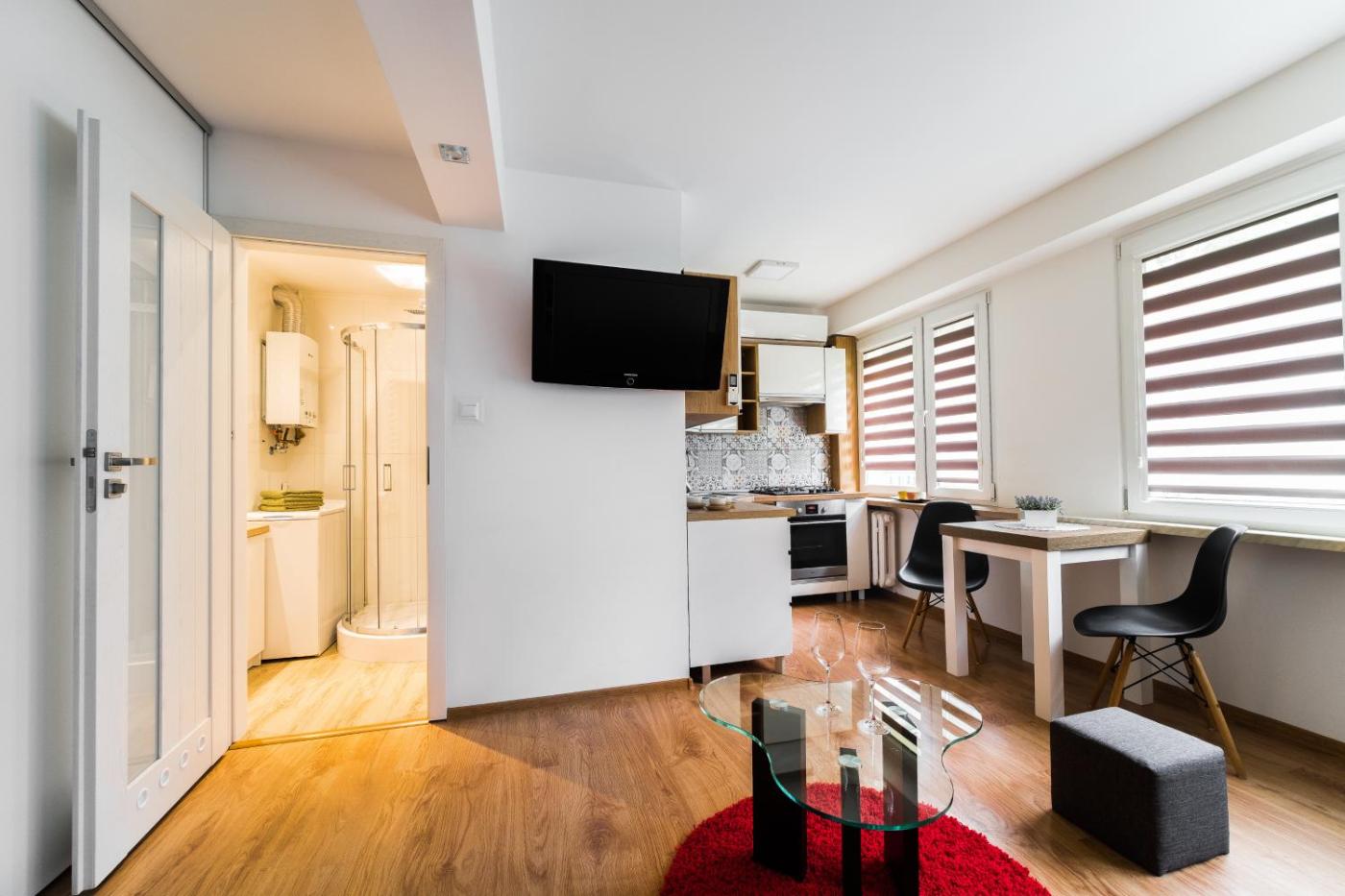 Oferta apartamentu obejmuje sypialnię (1), salon, kuchnię z pełnym wyposażeniem, w tym lodówką i ekspresem do kawy, a także łazienkę (1) z prysznicem oraz suszarką do włosów. W apartamencie zapewniono ręczniki i pościel.