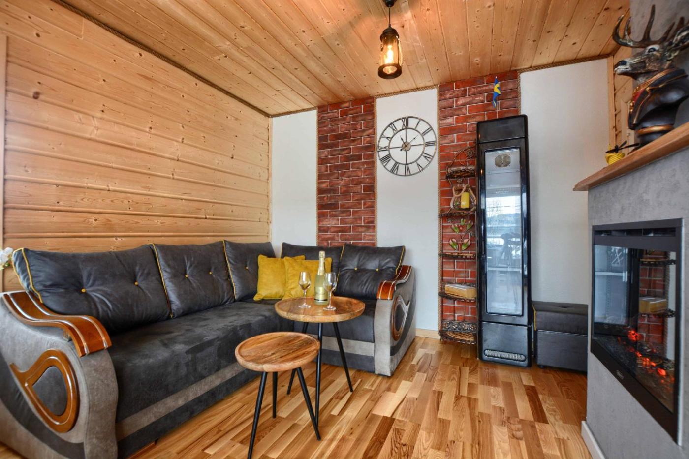 Dom z 2 sypialniami. This luxurious holiday home has a hot tub, a spa bath and a sauna. Boasting a private entrance, this holiday home features 1 living room, 2 separate bedrooms and 1 bathroom with a walk-in shower and a hairdryer. Guests will find a stovetop, a refrigerator, a dishwasher and kitchenware in the fully equipped kitchen. The holiday home also comes with a barbecue. Featuring a terrace with mountain views, this holiday home also features a washing machine and a flat-screen TV with satellite channels. The unit has 5 beds. Dom wakacyjny - 6 osobowy. Powierzchnia pokoju ok.: 35 mkw.